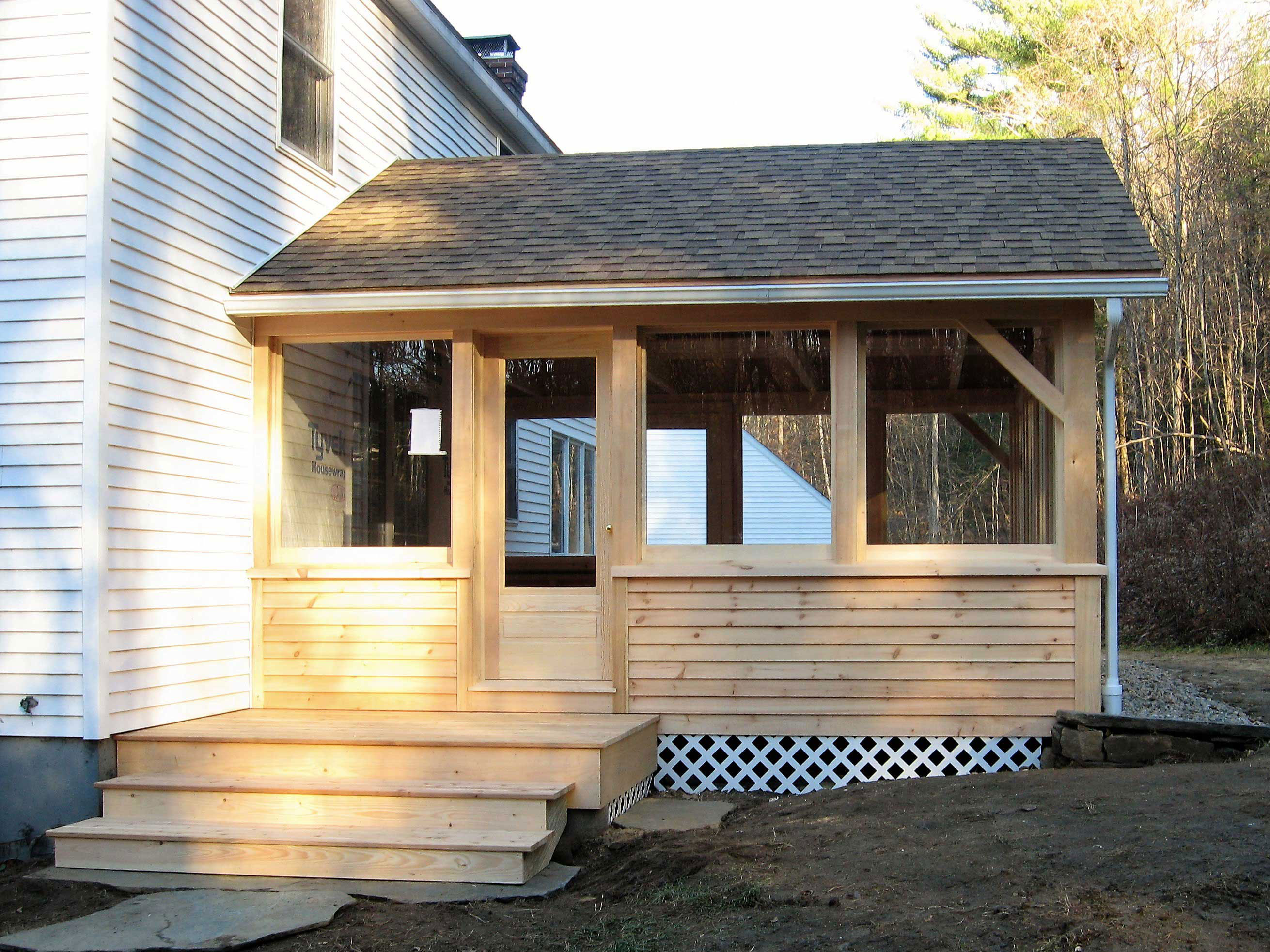 This 16'x16' room brings the outdoors indoors with 10 interchangeable storm and screen windows. Two combination storm/screen doors lead to the backyard and a grilling deck.